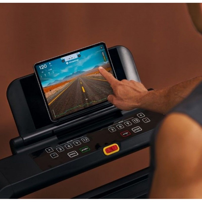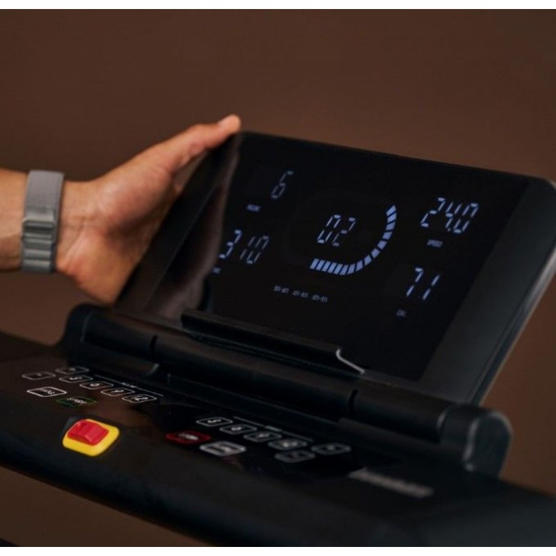 Амортизационная система обеспечивает мягкий бег, который снижает нагрузку на суставы и мышцы. Эргономичный LCD-дисплей с тримачем для планшета или смартфона позволяет удобно отслеживать параметры тренировки в режиме реального времени. Электронное регулирование наклона позволяет адаптировать тренировку под ваши цели — будь то похудение, развитие скорости или выносливости.