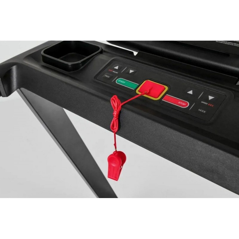 Эта модель сочетает компактность и устойчивость. Благодаря складной конструкции дорожка легко убирается даже в небольших квартирах. Надёжный двигатель обеспечивает плавный запуск и стабильную работу, а амортизация снижает нагрузку на позвоночник и суставы. Для долговечной службы рекомендуется регулярно смазывать беговое полотно, проверять крепления и использовать защитный коврик под тренажёр.