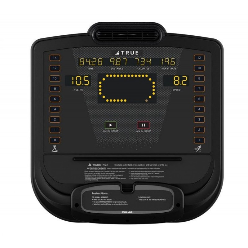 Консоль True Ignite создана с упрощённым, удобным и интуитивно понятным интерфейсом, позволяющим легко управлять настройками тренажёра. Большой светодиодный экран с оранжевой подсветкой отображает ключевые параметры тренировки, а быстрые кнопки изменения скорости и наклона делают процесс использования ещё комфортнее. Всё это создаёт идеальные условия для эффективных занятий и достижения новых спортивных целей.