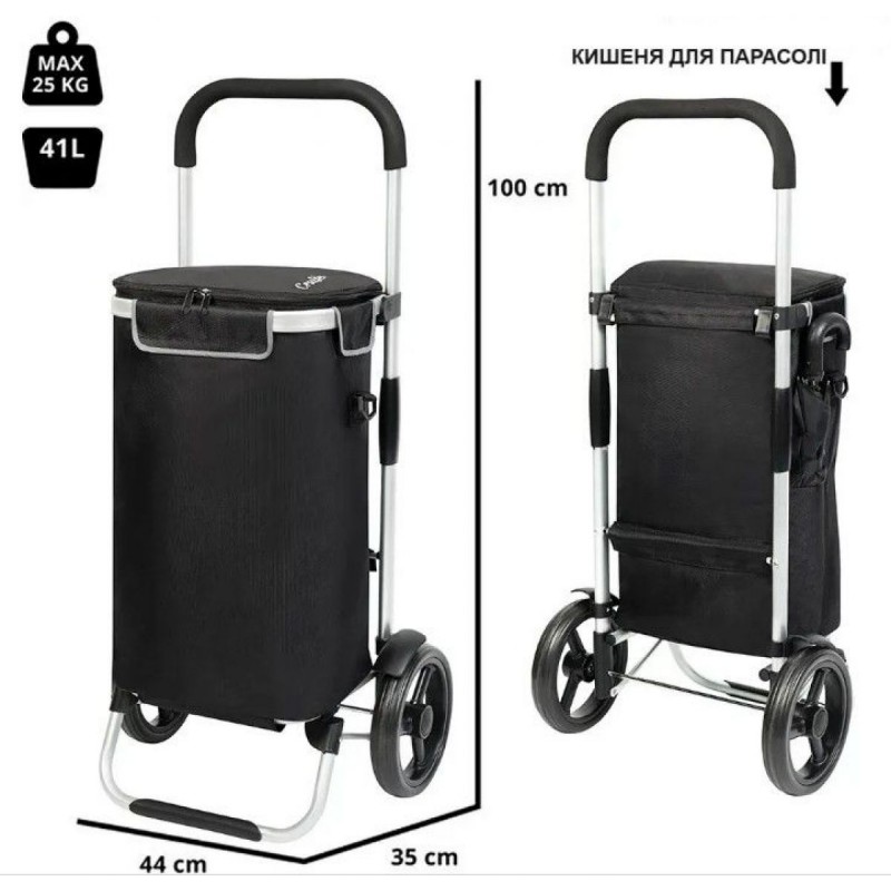 - Дополнительно: термокарман, держатель для зонта, светоотражатели с трёх сторон, 2 крючка для крепления к супермаркетной тележке