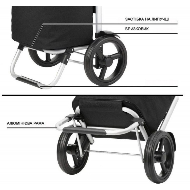 Тележка оснащена светоотражающими элементами, которые повышают безопасность в тёмное время суток. А встроенные брызговики защищают обувь от грязи и влаги. Это делает модель идеальной для любого сезона и погодных условий.