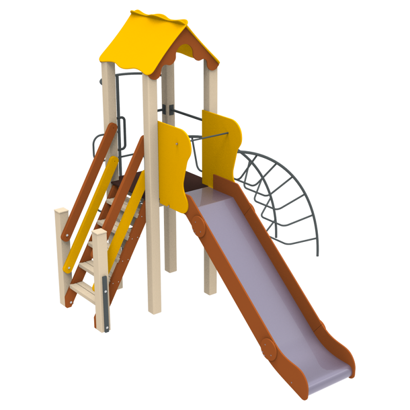 Дитячий комплекс Півник KIDIGO – класичний варіант для невеликого дитячого майданчика. Комплекс містить наступні елементи: вежа з дахом, гірка з захисними щитами, драбина, лазалка спіраль та лазалка ліана. Комплекси KIDIGO є безпечними і надійними, а також відповідають найвищим стандартам якості. Цей комплекс багатофункціональний та підійде дітям різного віку. Можна використовувати біля приватного будинку, в дитячих садках, а також біля житлових комплексів в містах та селах в зоні для маленьких дітлахів.