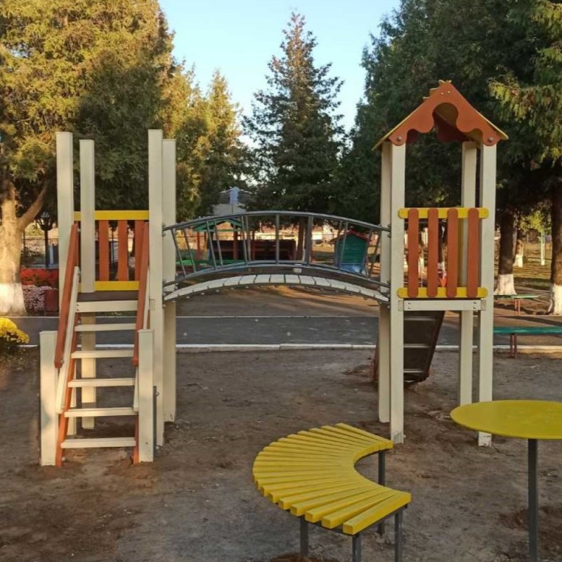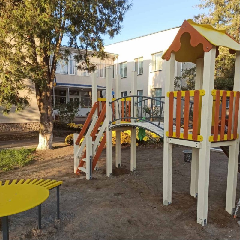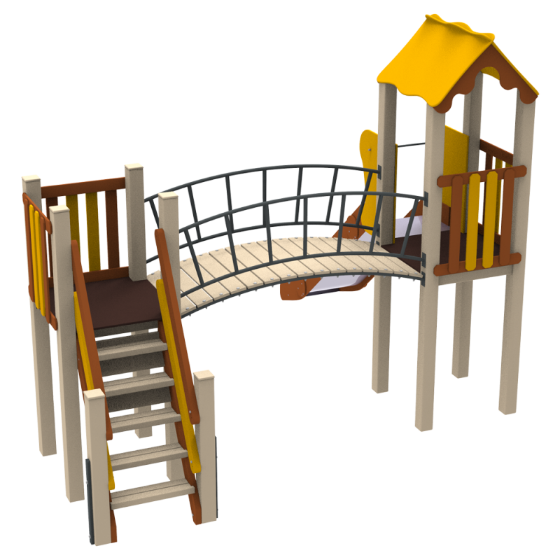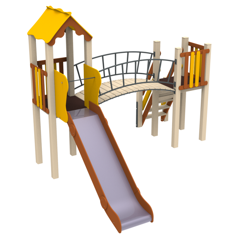 Дитячий комплекс Сонечко KIDIGO – чудовий класичний варіант для дитячого майданчика. Комплекс містить наступні елементи: вежа та платформа з парканчиками, арочний місток з перилами, драбина та гірка з захисними щитами. Комплекси KIDIGO є безпечними і надійними, а також відповідають найвищим стандартам якості. Цей комплекс підійде дітям різного віку. Можна використовувати біля приватного будинку, в дитячих садках, а також біля житлових комплексів в містах та селах в зоні для маленьких дітлахів.