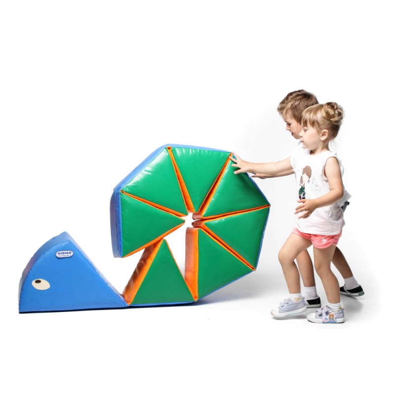 Дорожка-тренажер KIDIGO Гусеница состоит из 8 мягких треугольников. Дорожка-тренажер KIDIGO Гусеница прекрасно развивает координацию и ловкость. Отсутствие острых, твёрдых углов обеспечивает безопасность детей при игре.