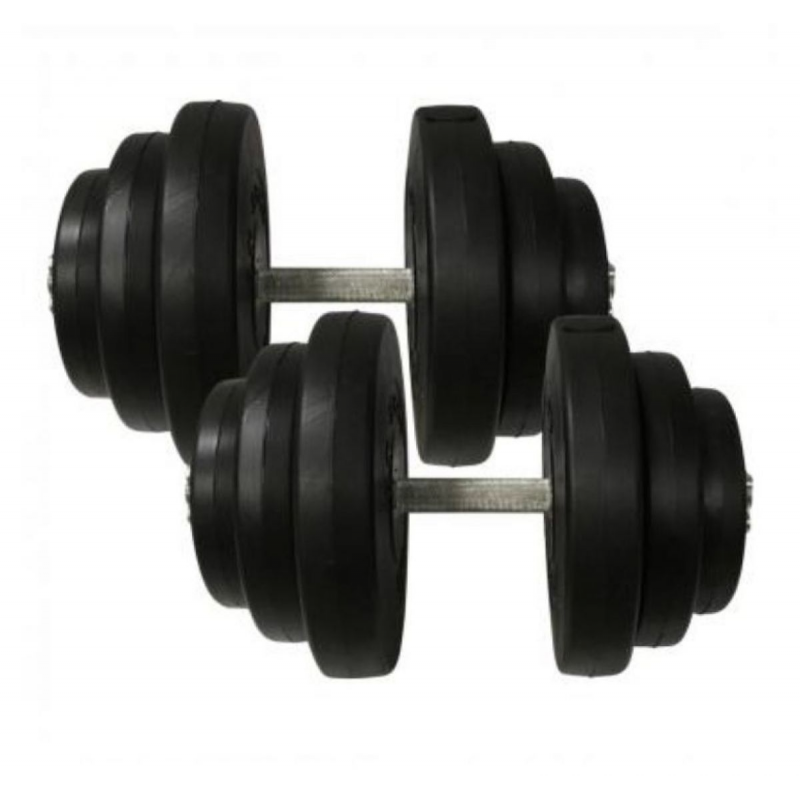 - Комплектация: 2 металлических грифа, 4 гайки «Вейдера», 4 диска по 5 кг, 4 диска по 2,5 кг, 4 диска по 1,25 кг