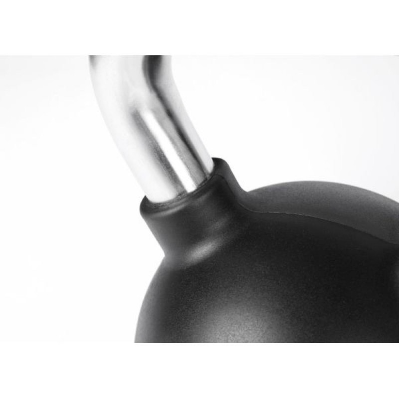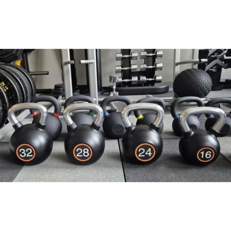 Гиря выполнена из высококачественного чугуна, что гарантирует прочность и устойчивость к интенсивной эксплуатации. Обрезиненное покрытие защищает пол от повреждений и снижает уровень шума при контакте с поверхностью.