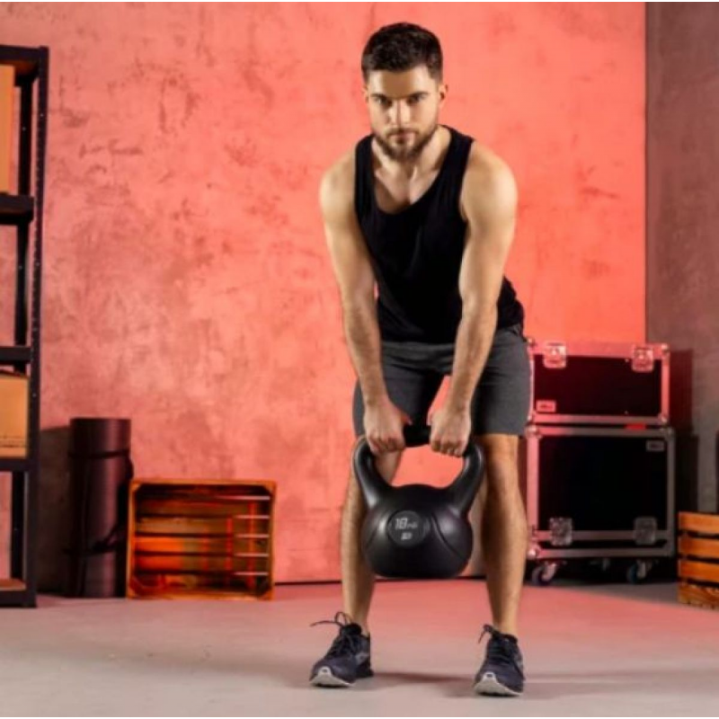 Для сохранения внешнего вида и функциональности рекомендуется хранить гирю в сухом помещении, избегая длительного воздействия прямых солнечных лучей. После тренировок достаточно протирать поверхность сухой или слегка влажной тканью. Виниловое покрытие не требует сложного ухода и рассчитано на долгий срок службы даже при регулярных нагрузках.