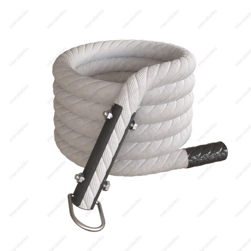 Канат выполнен из натурального хлопка — прочного, долговечного и износостойкого материала. Низкий коэффициент трения обеспечивает надежный хват и комфорт при использовании. Модель входит в профессиональную линейку Explode от производителя Интер Атлетика и оснащена простой, но надежной системой фиксации.