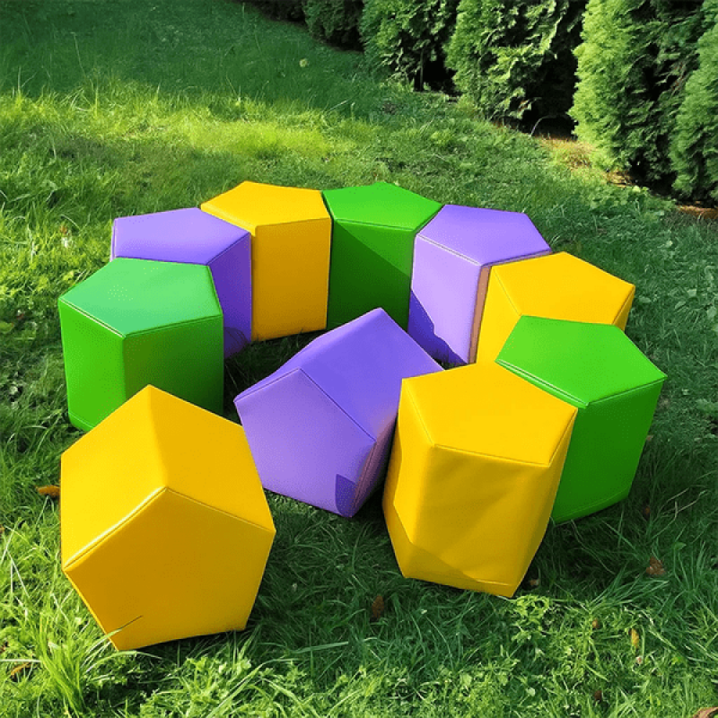Данный набор развивает у детей конструкторские способности, а также ловкость и сообразительность.Разнообразие фигур по размерам и небольшая масса позволяет детям самостоятельно передвигать эти модули.