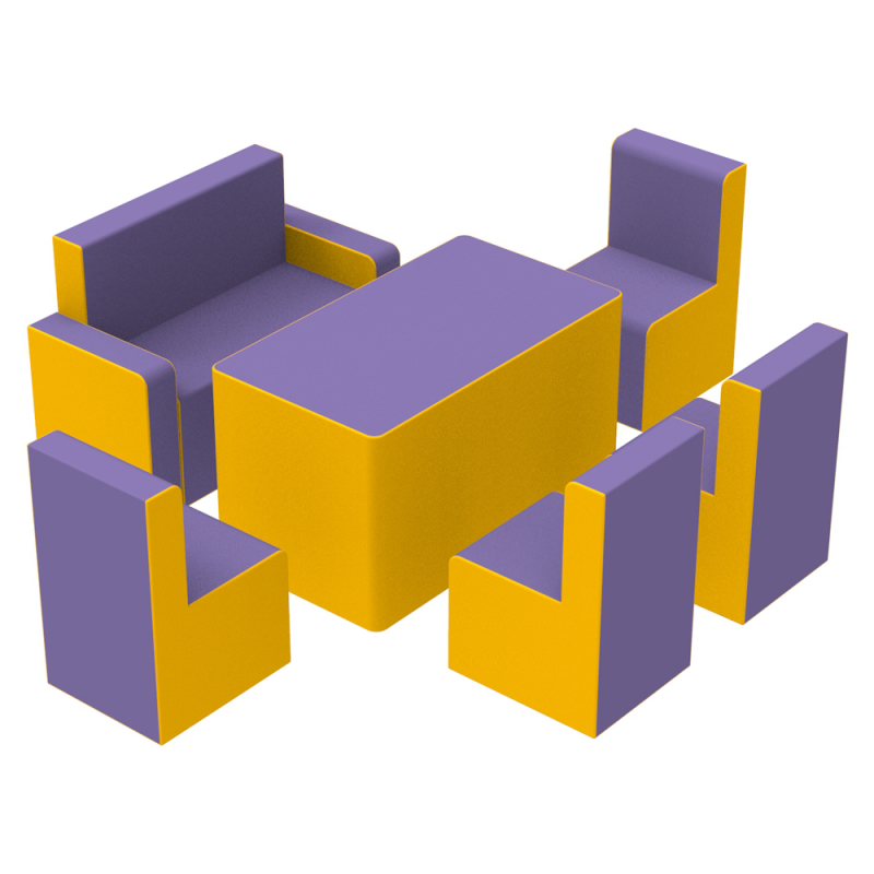 Набор состоит из 6 модулей. Высота сидения мебели 20см. Возможны любые цветовые решения и изготовление с аппликациями на спинках или боковинах сидений. По желанию заказчика набор может быть изготовлен в свободной комплектации по количеству и наименованию входящих модулей.