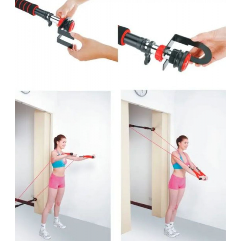 - Разнообразие упражнений: с комплектом можно выполнять тяги, подтягивания, упражнения для рук, плеч, груди и ног, а также растяжку и силовую работу с эспандерами.