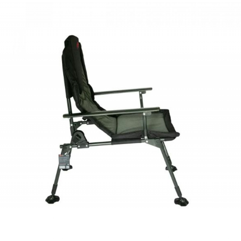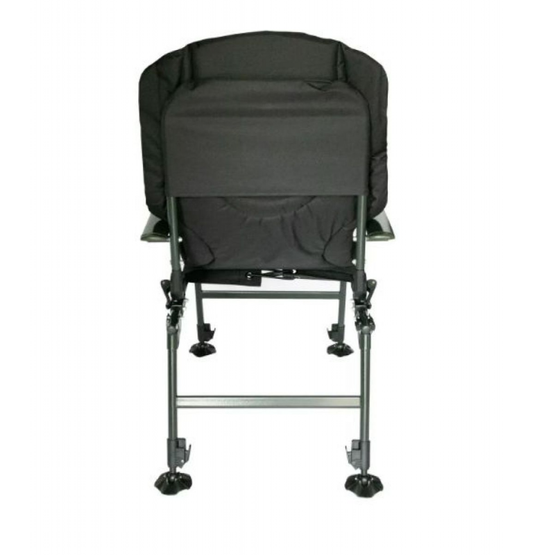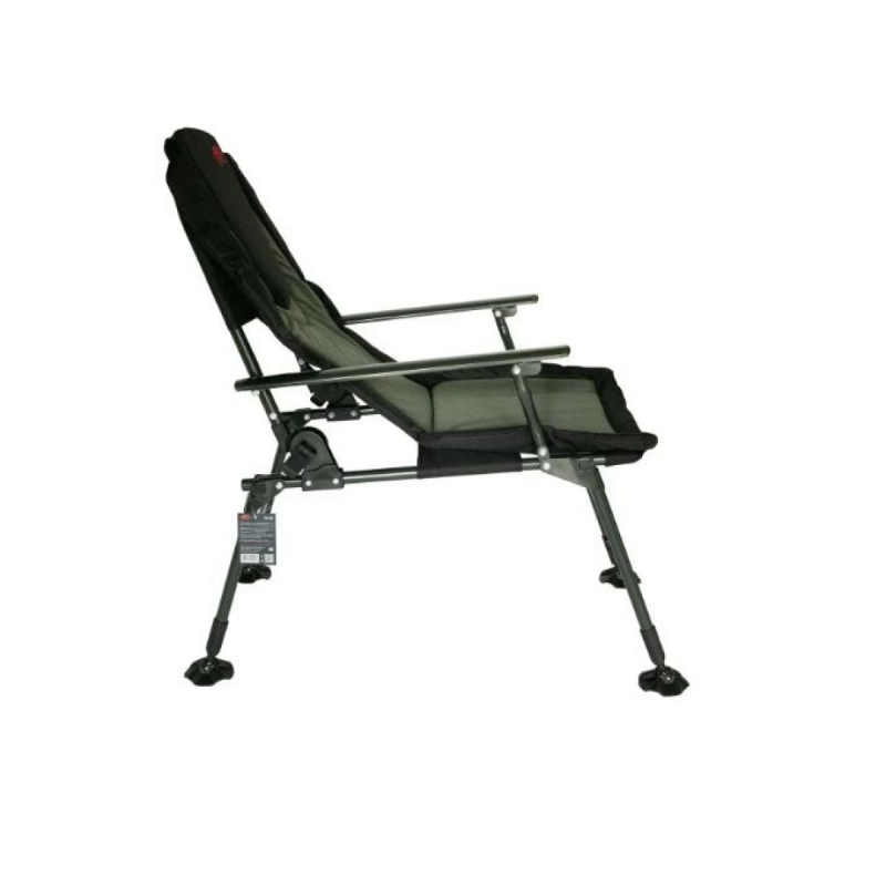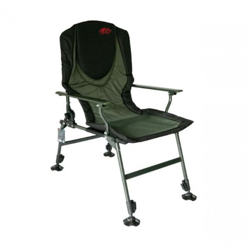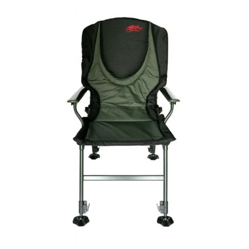 Эта модель особенно удобна для длительных рыбалок и кемпинга, так как сочетает прочность, стабильность и комфорт. Регулировка наклона спинки и телескопические ножки обеспечивают максимальное удобство на любых поверхностях, а мягкий неопрен в области изголовья поддерживает шею и спину.
