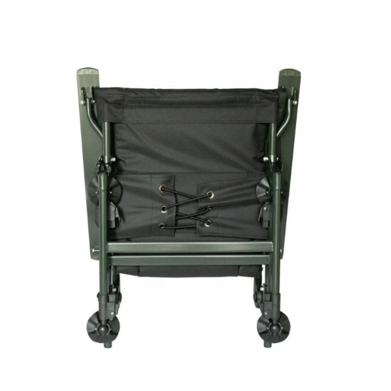 Сиденье и спинка обиты водонепроницаемым полиэстером Oxford 600D с PVC покрытием, что защищает материал от влаги и загрязнений. В области изголовья предусмотрена мягкая вставка из неопрена, которая поддерживает шею и делает отдых более комфортным. Стальные подлокотники добавляют прочности конструкции и удобства при длительном сидении.