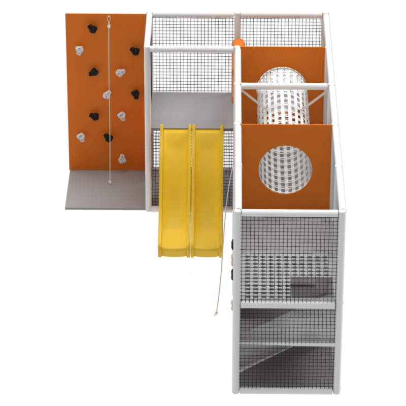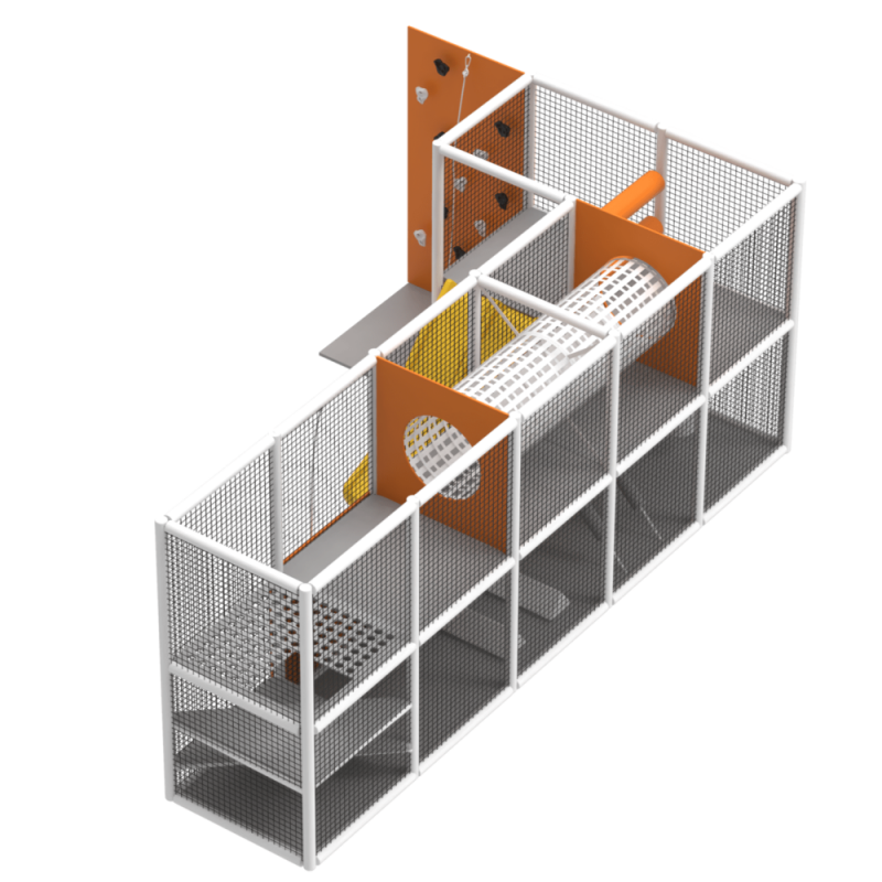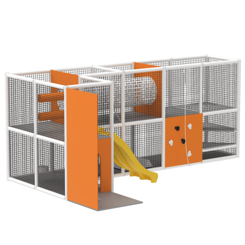 Спеціально розроблений дизайн з різними ігровими секціями дозволить дітям відмінно провести час. Лабіринт доповнений дитячими гірками та скеледромами.