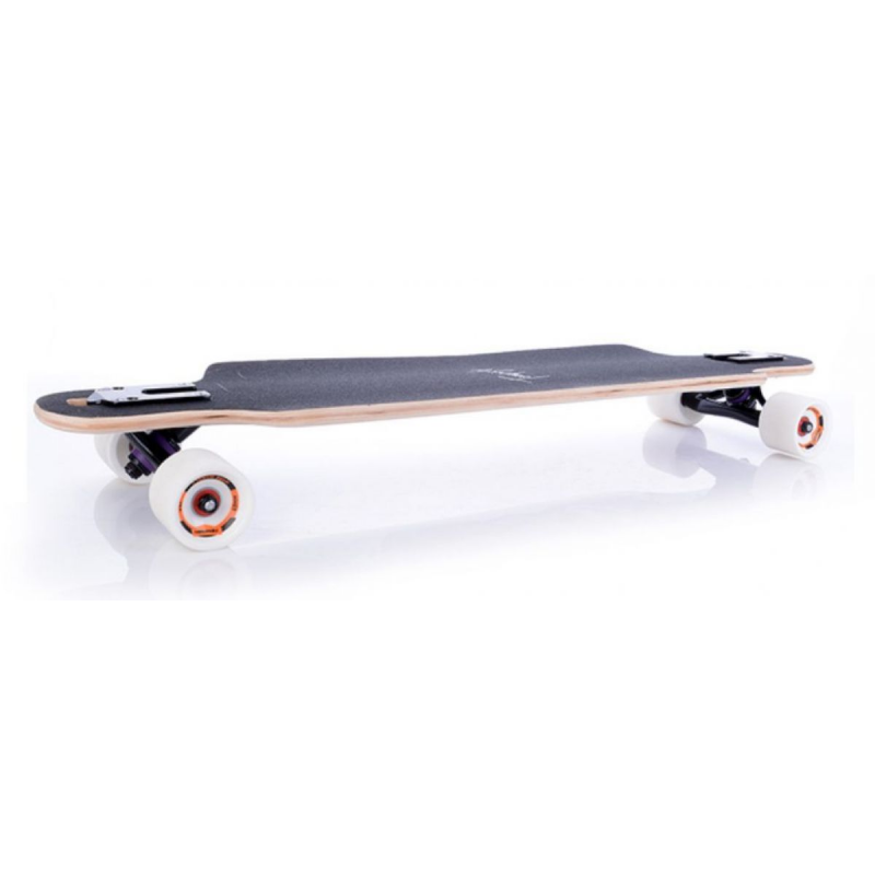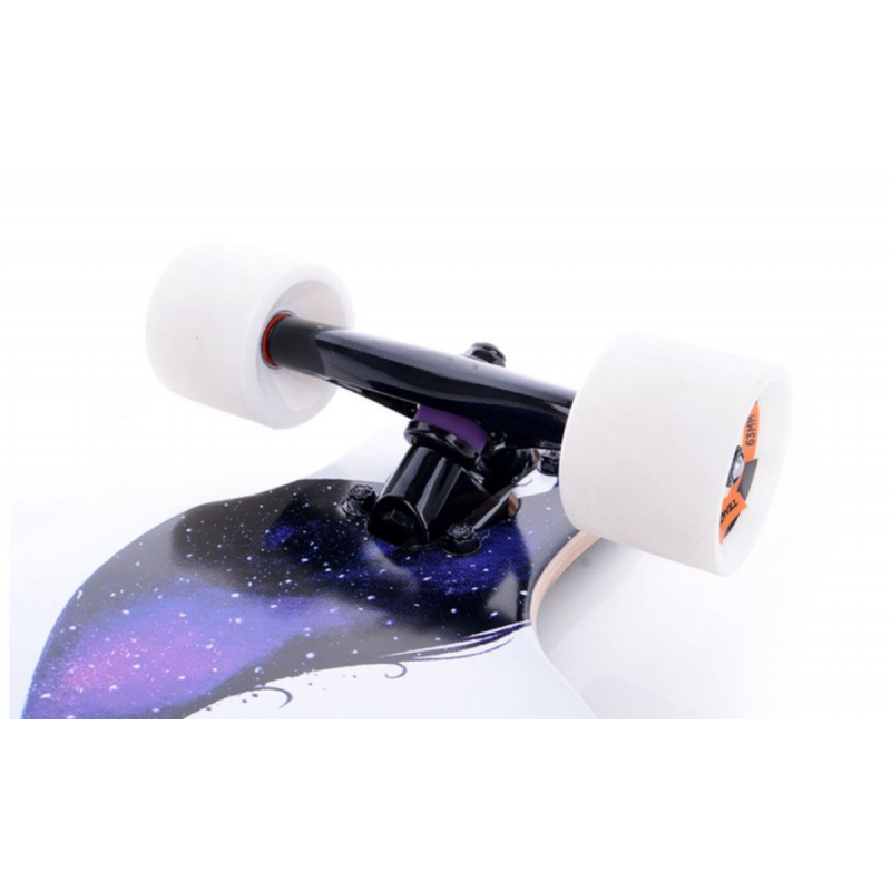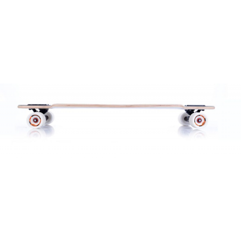 Модель выполнена в формате Drop-through, что обеспечивает низкую посадку и повышенную устойчивость. Центр тяжести райдера находится ближе к земле, а значит — катание становится безопаснее и более контролируемым, особенно на скоростных участках. Дополнительные вырезы в области колёс предотвращают их закусывание во время поворотов, делая езду плавной и устойчивой.