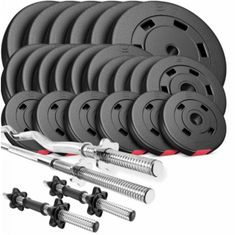 | Комплектация | Гриф прямой - 1 шт, гриф W-образный - 1 шт, гриф 45см - 2 шт, диски 10 кг - 6 шт, диски 5 кг - 6 шт, диски 2,5 кг - 4 шт, диски 1,25 кг - 6 шт, гайки Вейдера - 8 шт |