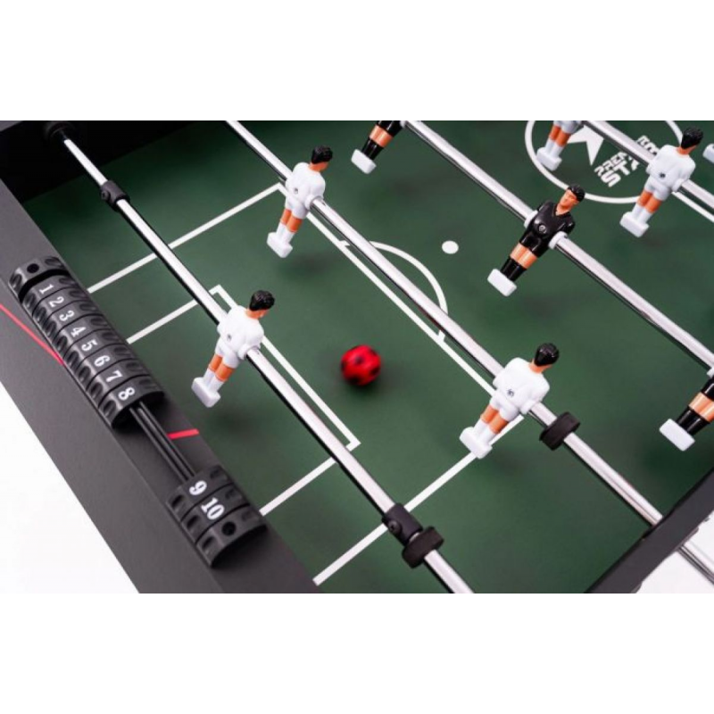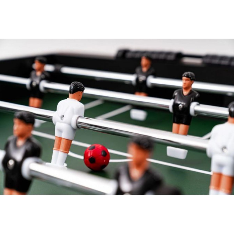 Такое решение полностью устраняет «мертвые зоны», благодаря чему игра становится более динамичной, плавной и непрерывной. Фигурки футболистов установлены на прочные направляющие, а в комплект входят три мяча диаметром 36 мм.