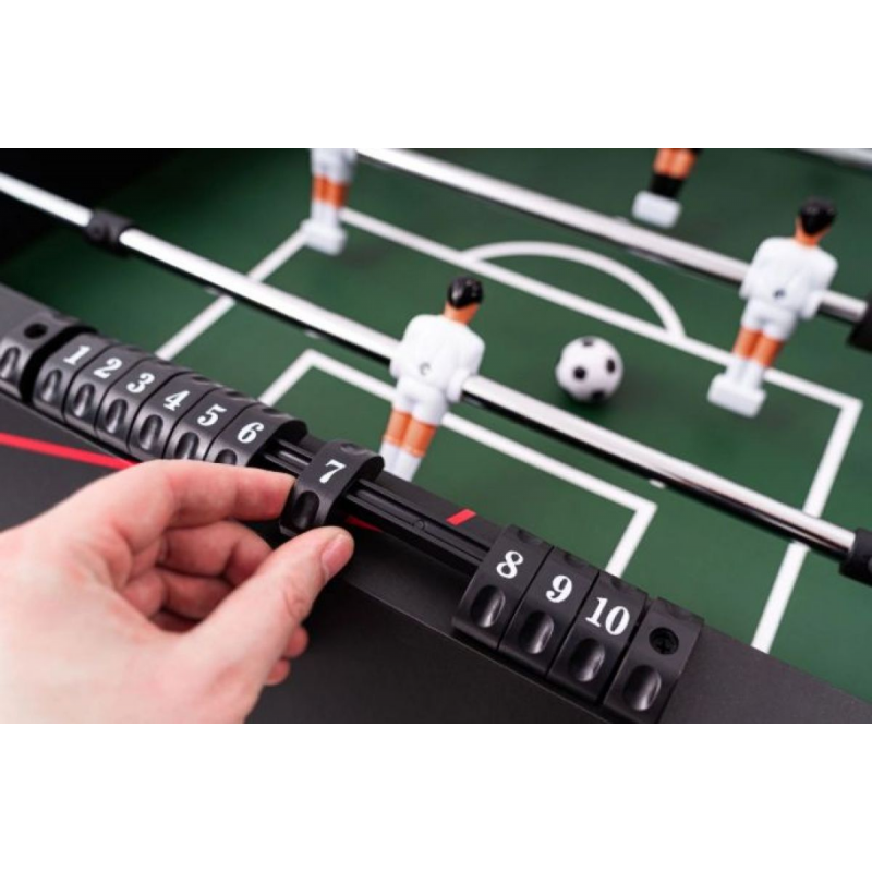 Полые стальные направляющие с оцинкованным и хромированным покрытием обеспечивают плавный ход фигурок и устойчивость к износу. Благодаря этому управление игроками остается точным и комфортным даже во время напряженных игровых моментов.