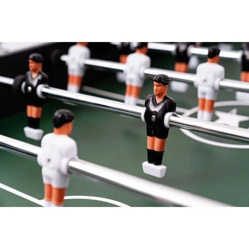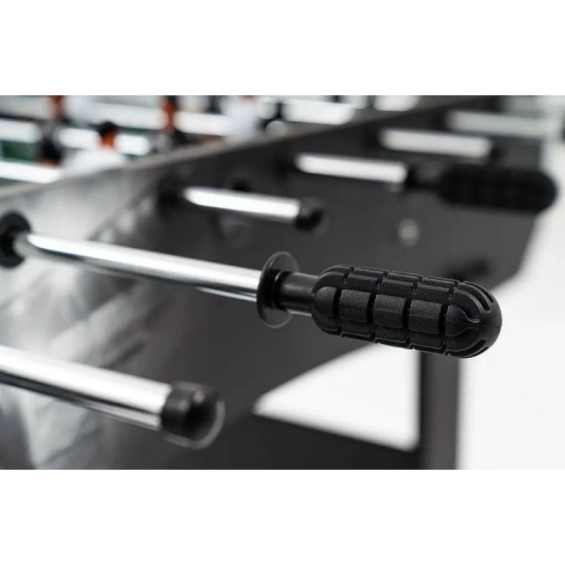 Широкие ножки увеличивают общую устойчивость конструкции, а регулируемые опоры позволяют точно выровнять стол на неровном полу. Полые стальные направляющие с оцинкованным и хромированным покрытием гарантируют плавное скольжение фигурок и высокую износостойкость даже при регулярной игре.