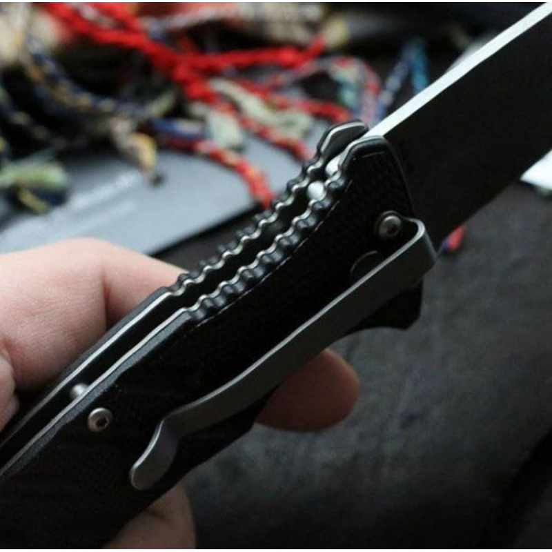 Главной особенностью ножа является пружинный механизм автоматического открытия. Достаточно нажать кнопку — и клинок мгновенно приводится в рабочее положение за счет натяжения пружины. При этом закрытый нож дополнительно защищен скользящим предохранителем, который предотвращает случайное раскрытие при ношении в кармане или на снаряжении.