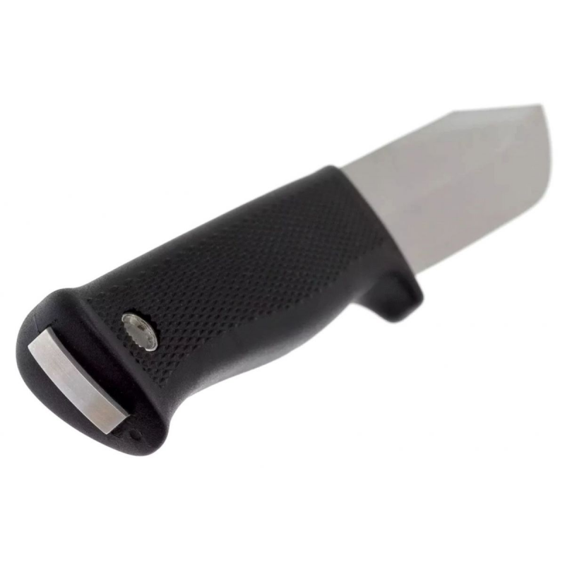 Форма рукояти анатомическая, она удобно ложится в ладонь, а дополнительную защиту обеспечивает гарда из того же материала. На рукояти предусмотрено отверстие под темляк, что позволяет персонализировать нож и сделать переноску еще удобнее.