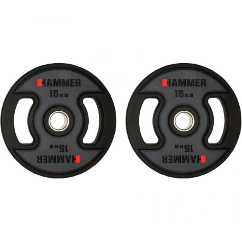 Олимпийские диски Hammer PU Weight Discs 2*15 kg 4709, Чугун для профессиональных тренировок