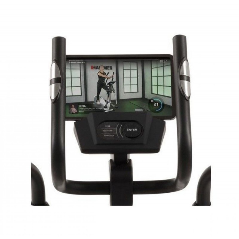 Орбитрек Hammer CrossPace 5.0 NorsK поддерживает мультимедийные платформы Zwift и Kinomap. Это открывает доступ к виртуальным маршрутам, интерактивным тренировкам и соревновательным режимам, которые делают занятия по-настоящему увлекательными. Контроль пульса осуществляется с помощью сенсорных датчиков на рукоятках, а при необходимости можно подключить нагрудный кардиодатчик для еще большей точности.