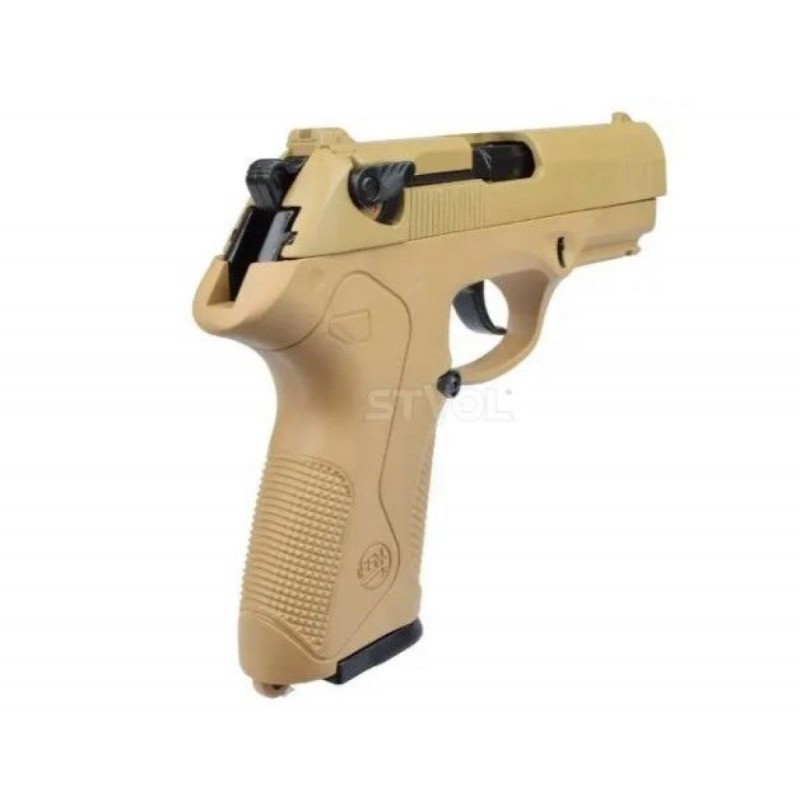 Затвор выполнен из цинкового сплава (Zamac), что даёт ощущение веса, близкое к оригиналу. Рама изготовлена из прочного полимерного материала — лёгкая и устойчивая к механическим воздействиям. УСМ — двойного действия: курок можно взводить вручную или при нажатии на спусковой крючок, что упрощает обучение. Наличие ручного предохранителя повышает безопасность при хранении и транспортировке.