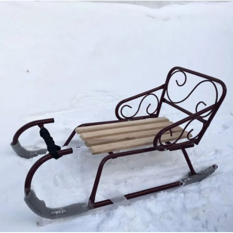 Для сохранения внешнего вида и долговечности рекомендуем после катания очищать санки от снега и влаги, а при хранении в помещении использовать сухое место. Металлические элементы можно протирать мягкой тканью, а деревянные планки периодически обрабатывать специальными средствами для дерева.
