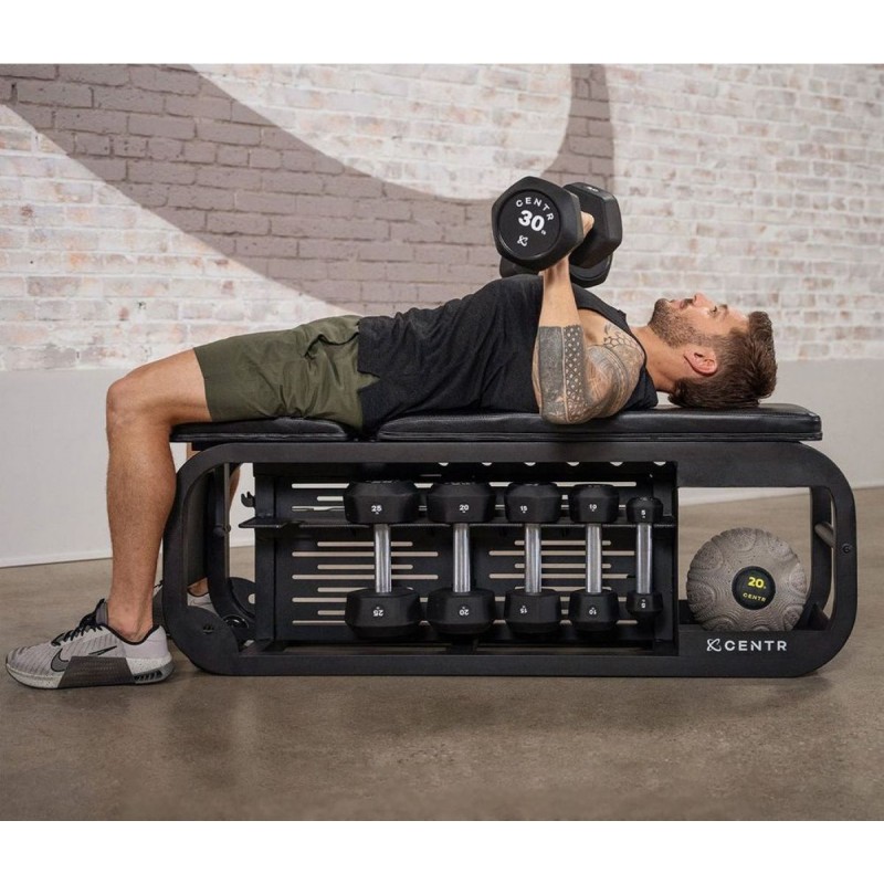 Скамья CENTR Fusion Bench CFB1.1 подходит для новичков и профессионалов, тренирующихся дома, в студиях персональных тренировок или фитнес-клубах. Она универсальна, не занимает много места и позволяет выполнять десятки упражнений для мышц груди, плеч, рук, пресса и спины. Наличие встроенного хранения экономит пространство и поддерживает порядок в тренировочной зоне.