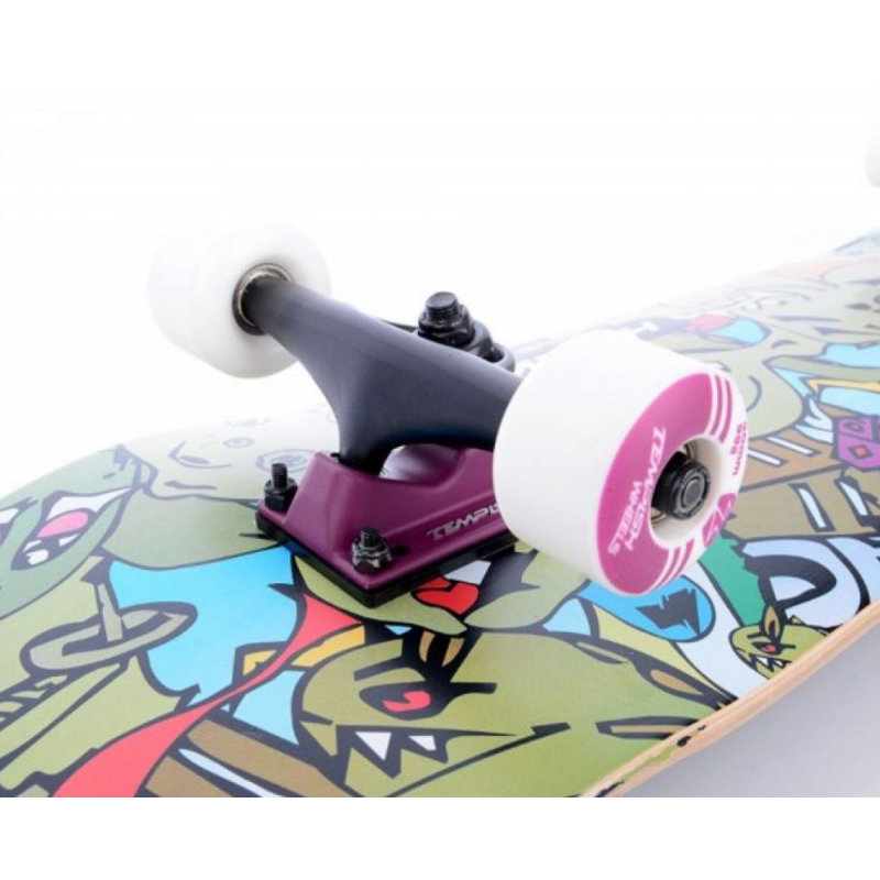 На верхней части деки нанесено зернистое покрытие deluxe grip tape 80AB, предотвращающее скольжение ног. Такое антискользящее напыление повышает безопасность и устойчивость райдера во время катания. Подвеска сбалансирована по жёсткости, что делает езду плавной и комфортной, особенно на ровных дорогах. Скейтборд Tempish CRAZZY прекрасно подходит как для городских улиц, так и для тренировок в скейт-парке.