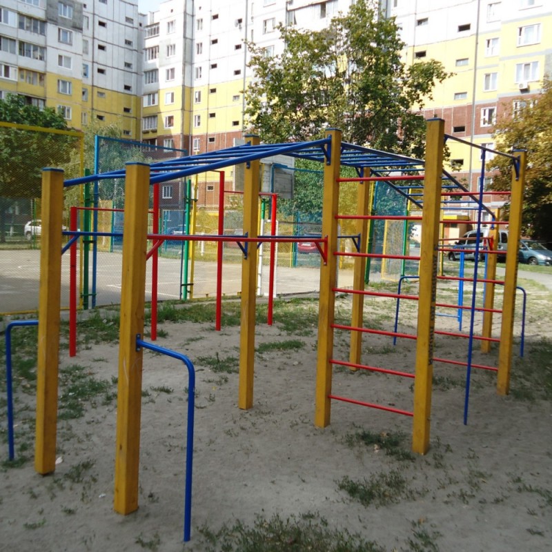 Спортивний комплекс складається з багатьох різноманітних елементів, що дозволяє одночасно займатися декільком дітям. Чудово підійде для спортивної зони навчальних закладів.