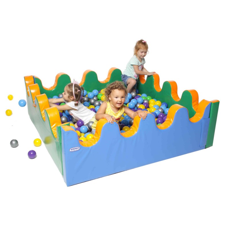 Сухий басейн KIDIGO «Море» являє собою конструкцію квадратної форми, яка складається з дна і товстих м'яких стінок, які з'єднуються липучками. Стінки у вигляді хвилі створюють додатковий інтерес для дітей . У нього можна насипати пластикові кульки, м'які іграшки та ін. Призначений для дитячих рухливих ігор, а також рекомендований для тонусу і тренування м'язів і зняття напруги.