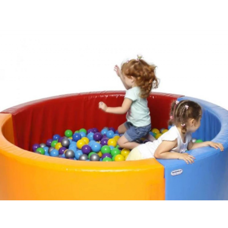 Борты наполнены плотным поролоном и обтянуты прочной ПВХ-тканью, благодаря чему конструкция отличается упругостью, устойчивостью к деформациям и износостойкостью. Материал легко очищается – сухой бассейн можно протереть влажной тряпкой или помыть при необходимости. Это делает модель идеальной не только для помещений, но и для использования на свежем воздухе.