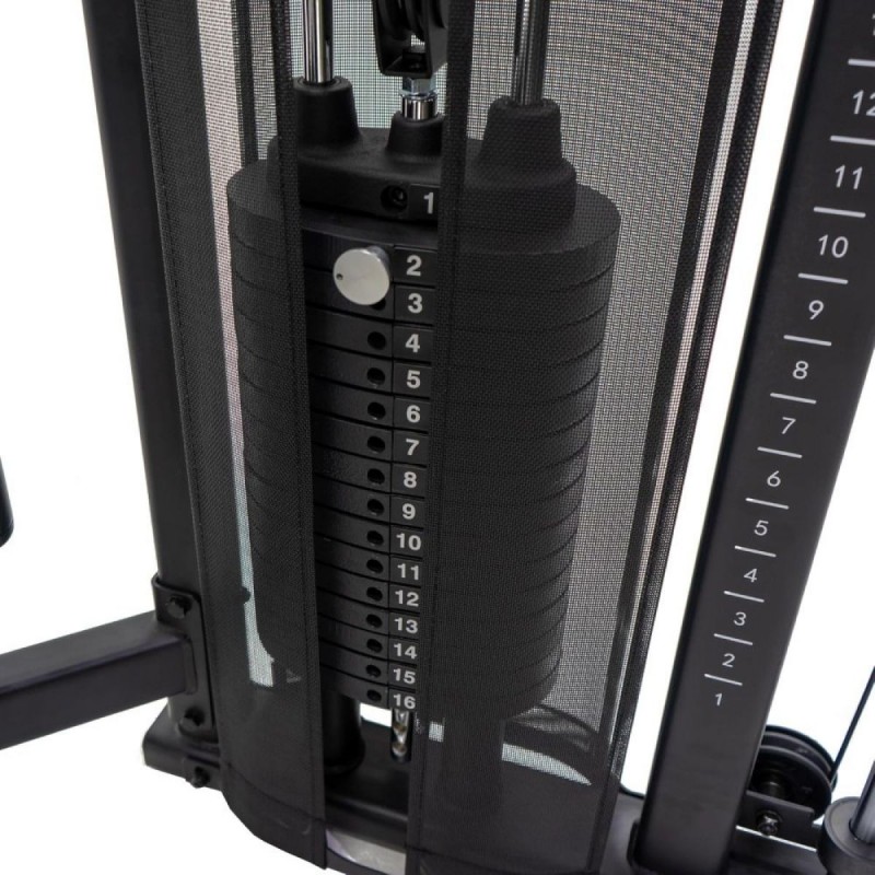 Конструкция машины Смита Inspire SF5 обеспечивает строгую траекторию движения грифа, снимая нагрузку с суставов и снижая риск травм. Это особенно важно для начинающих спортсменов, а также для тех, кто восстанавливается после травм. Одновременно функциональные блоки с тросами дают возможность прорабатывать мышцы под разными углами, развивая силу, выносливость и координацию.