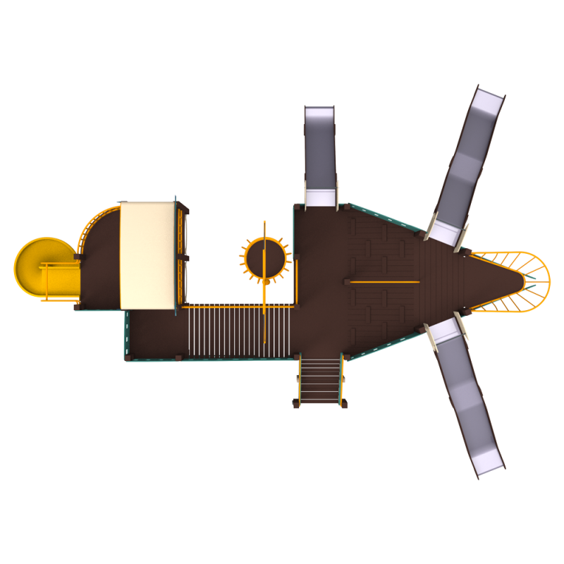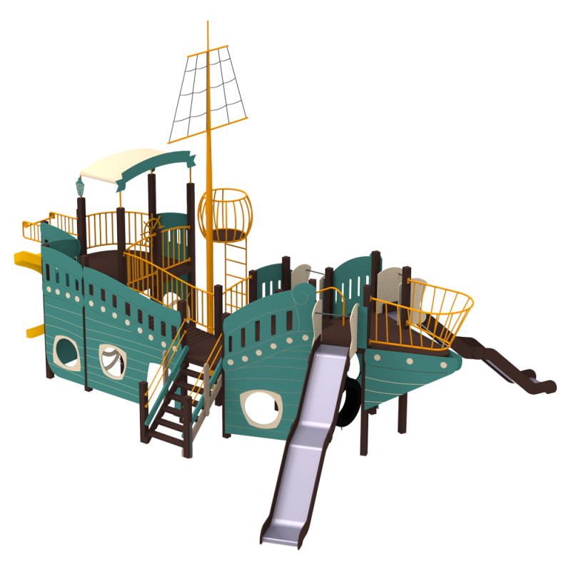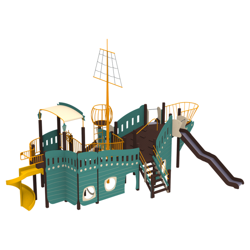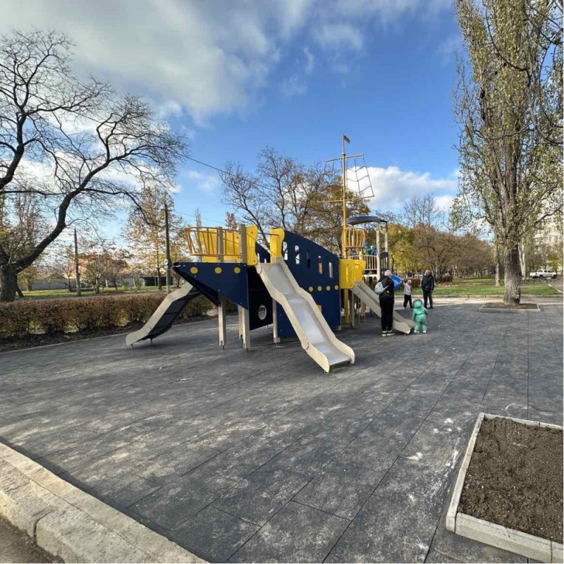 Дитячий комплекс прикрашений яскравим парканом у вигляді слоника, а також укомплектований новими цікавими елементами.