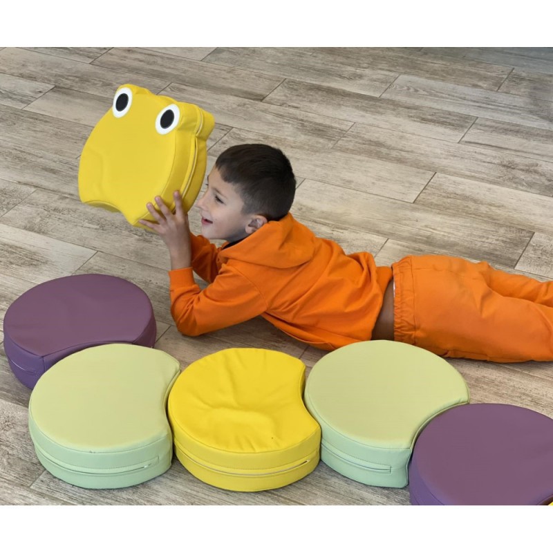 Зроблено Доріжку-тренажер Жабку із щільного поролону та обтягнуто м'якою, приємною на дотик ПВХ тканиною, яка, до того ж, легко миється.