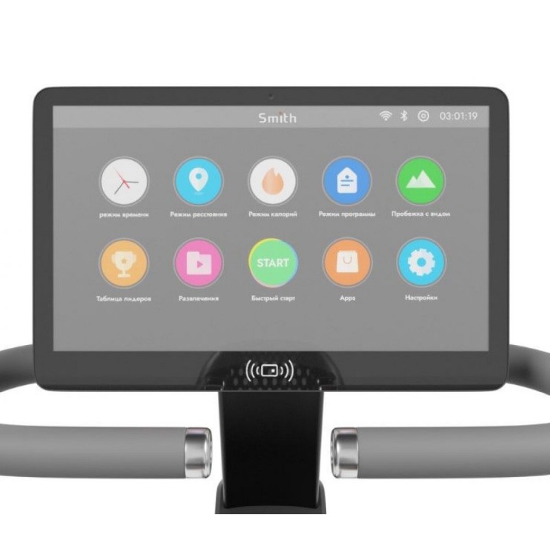 - Інтерактивний сенсорний дисплей 15,6” з програмами HIIT та віртуальними маршрутами;