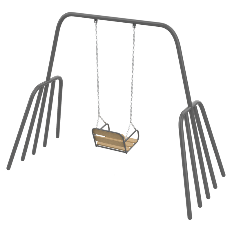 Елементи дитячого обладнання для дитячих майданчиків. Ексклюзивна лінія дитячих майданчиків та дитячого обладнання. Дана дитяча гойдалка одномісна. Гойдалка виконана в оригінальному стилі і виглядає масивним та оригінальним дизайном, що привертає увагу.
