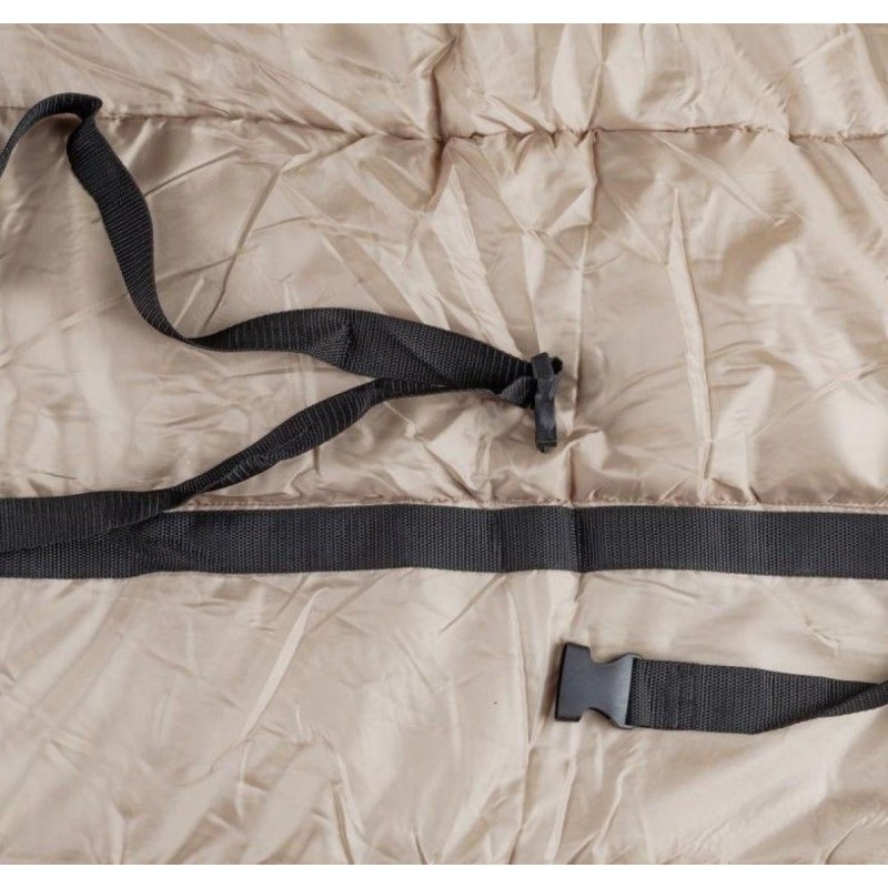 У складеному вигляді розкладачка фіксується ременем, що полегшує транспортування в багажнику авто або перенесення вручну. У комплект входять чохли для ліжка та спального мішка, що забезпечує порядок і захист під час перевезення.