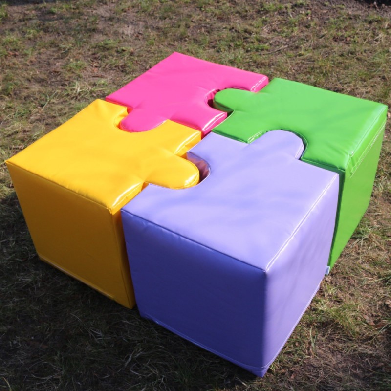 Комплект дитячих пуфів мозаїки Kidigo складається з 4 м'яких деталей.