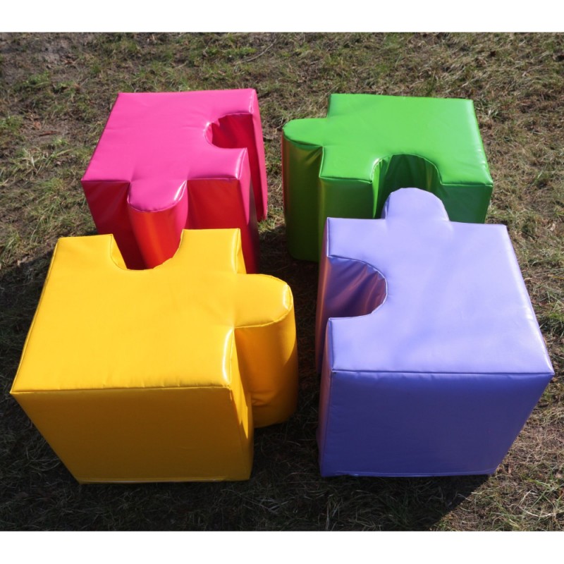 Зроблено комплект дитячих пуфів Мозаїка Kidigo із щільного поролону та обтягнуто м'якою, приємною на дотик ПВХ тканиною, яка, до того ж, легко миється.