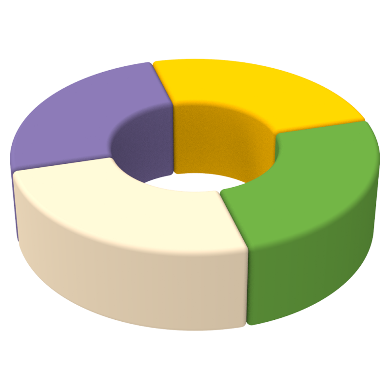 Комплект дитячих пуфів Орбіта Kidigo складається із 4 деталей, кольорових деталей.