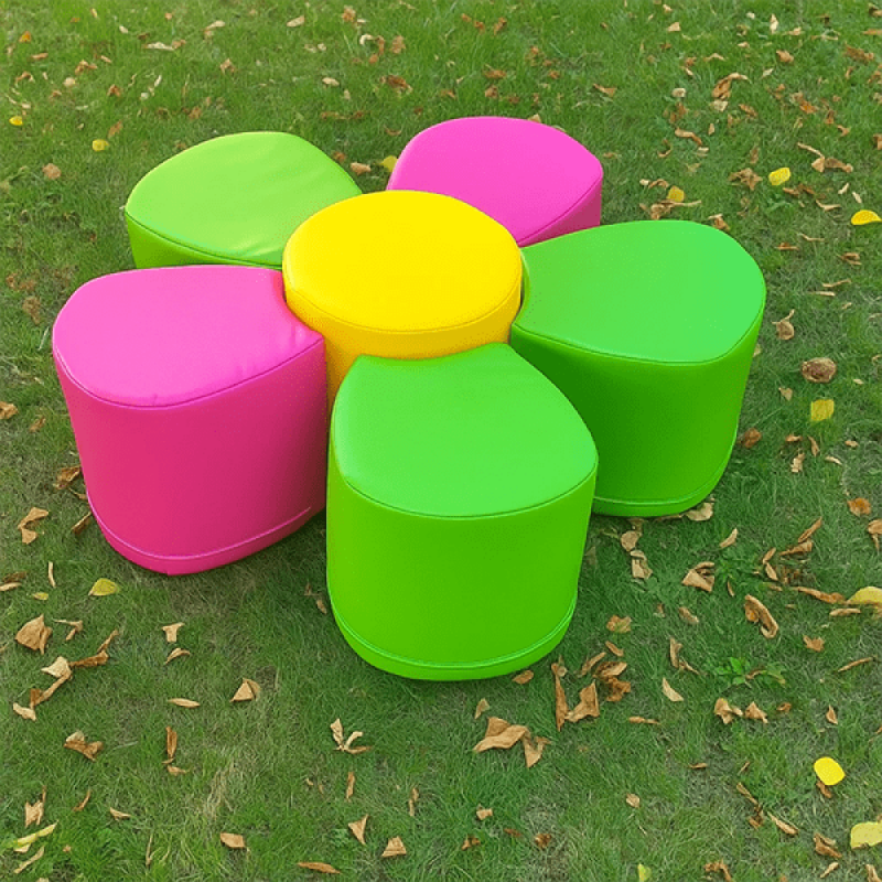 Комплект дитячих пуфів Квітка Kidigo, розвиває у дітей конструкторські здібності, а також спритність та кмітливість.
