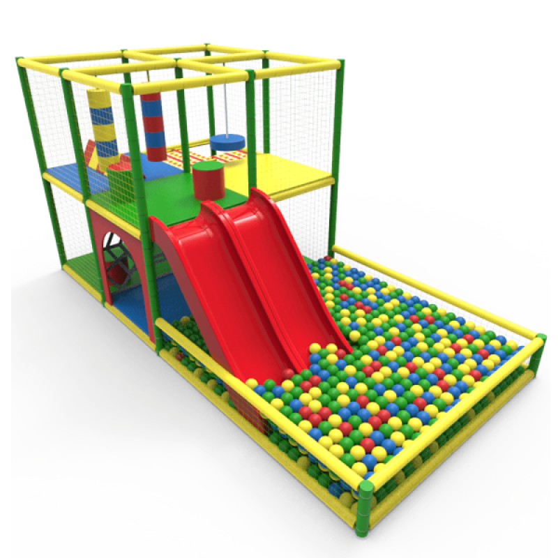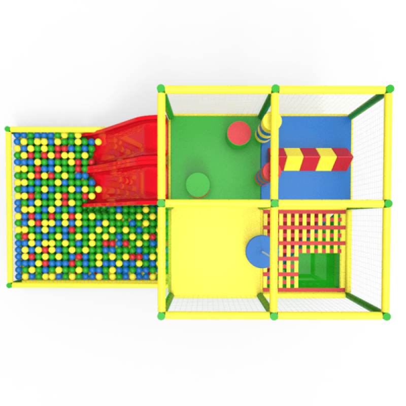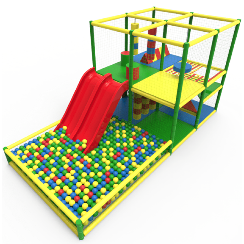 Багаторівневий лабіринт із вбудованою секцією сухого басейну відмінно підходить для облаштування ігрової зони малюків.