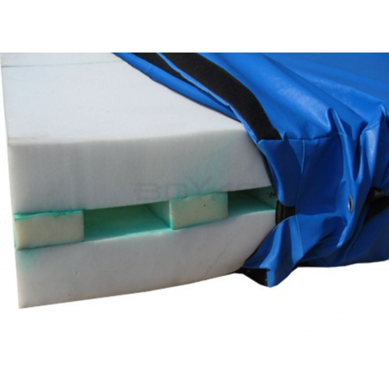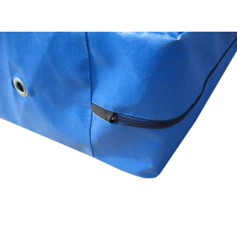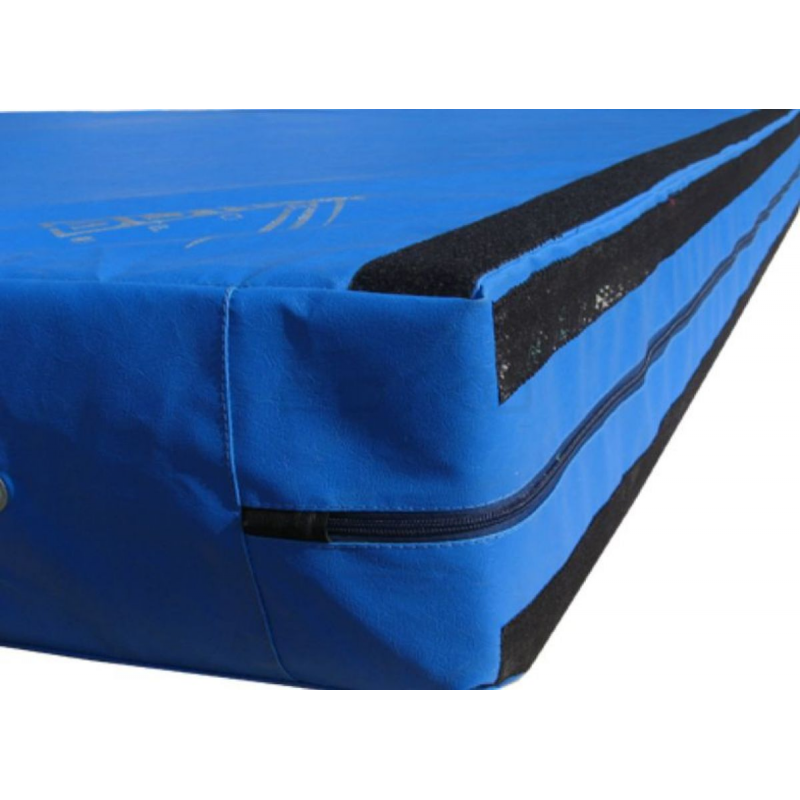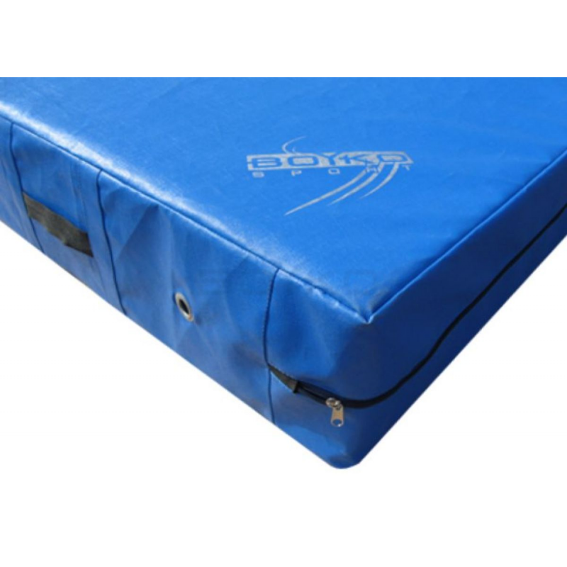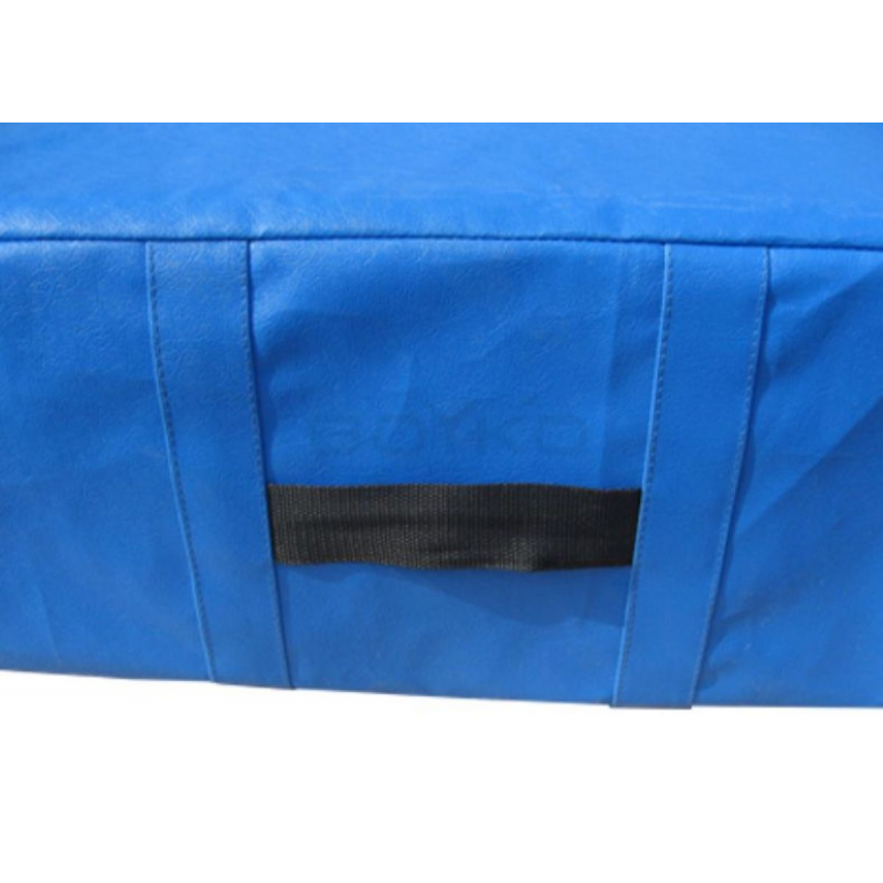 Чохол виготовлений із міцного ПВХ, стійкого до стирання та вологи. Матеріал не вбирає піт, легко очищається та підходить для регулярної санітарної обробки. Синій колір виглядає акуратно та професійно, відмінно вписуючись в інтер'єр спортивних залів та тренувальних студій.