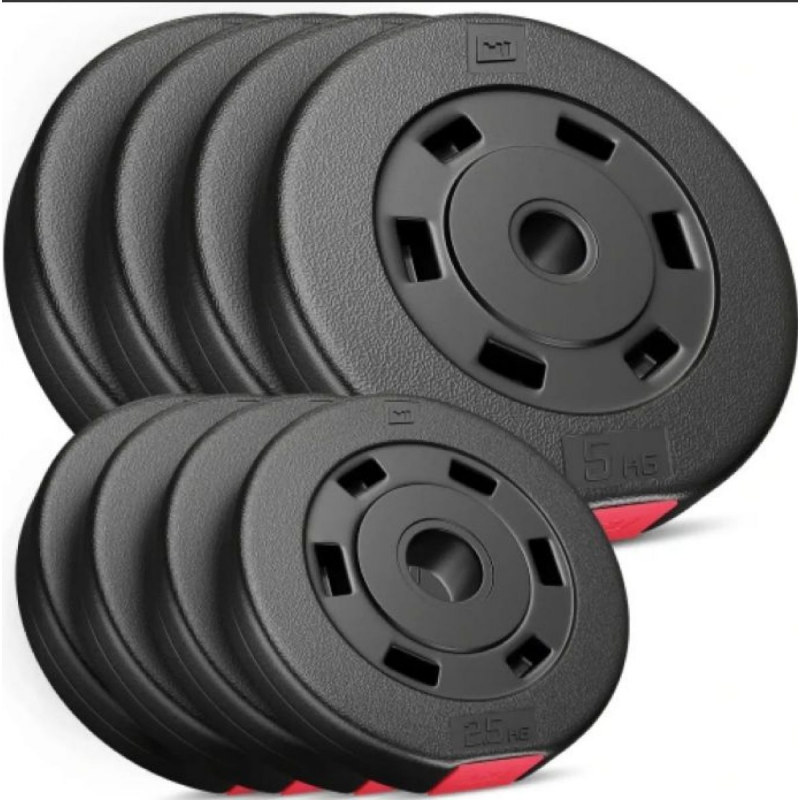 Набір сумісний з більшістю стандартних дисків завдяки універсальному діаметру отворів. Це дозволяє за потреби розширювати комплект і збільшувати навантаження. Догляд за обладнанням простий: досить регулярно очищати поверхні та перевіряти надійність фіксації. Компактні розміри роблять зберігання зручним навіть у обмеженому просторі.