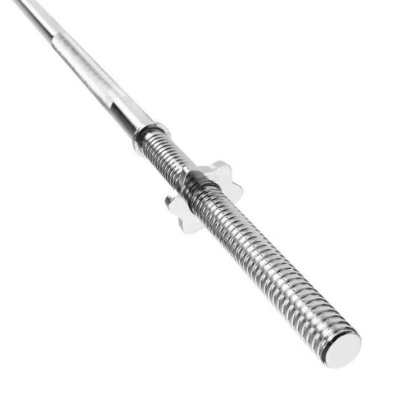 Прямий гриф виконаний з високоякісної сталі та має хромоване покриття, що захищає метал від корозії. Рифлена зона хвата забезпечує надійне зчеплення з руками та підвищує безпеку під час виконання вправ. Фіксація дисків здійснюється гайками Вейдера з гумовими ущільнювачами, що унеможливлює люфт і прискорює зміну ваги.