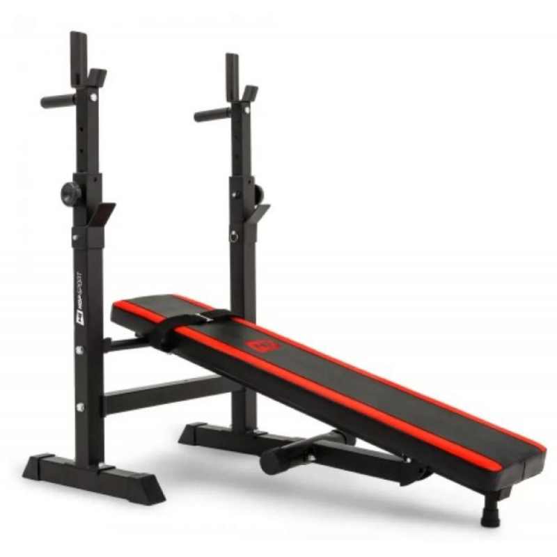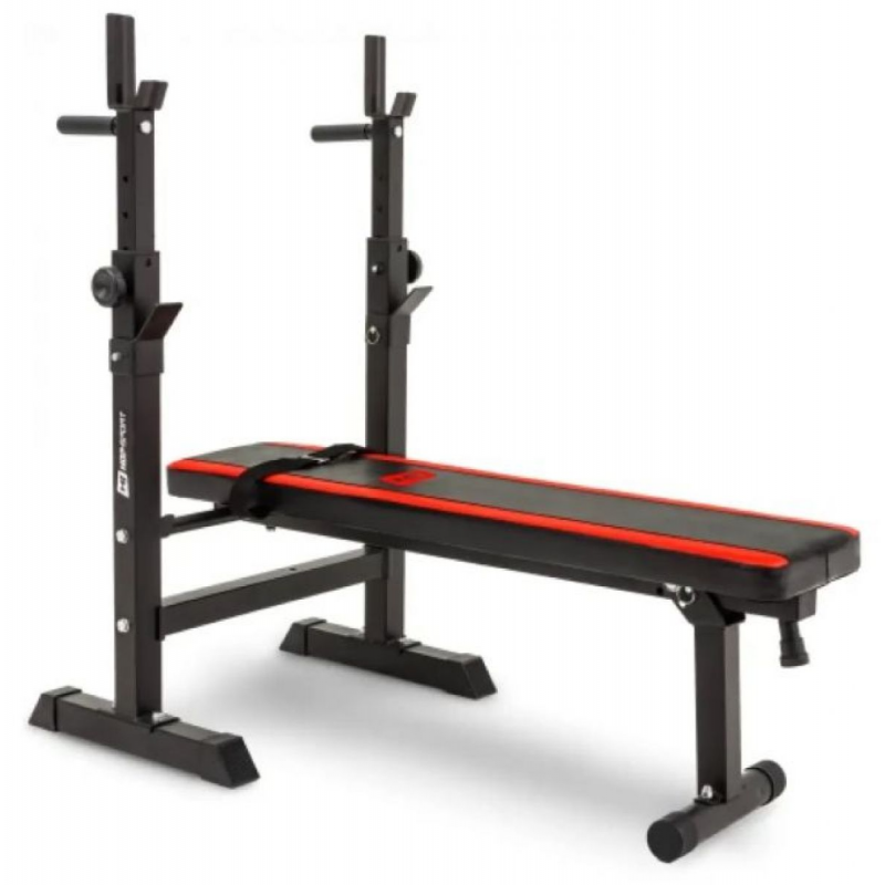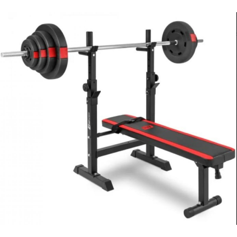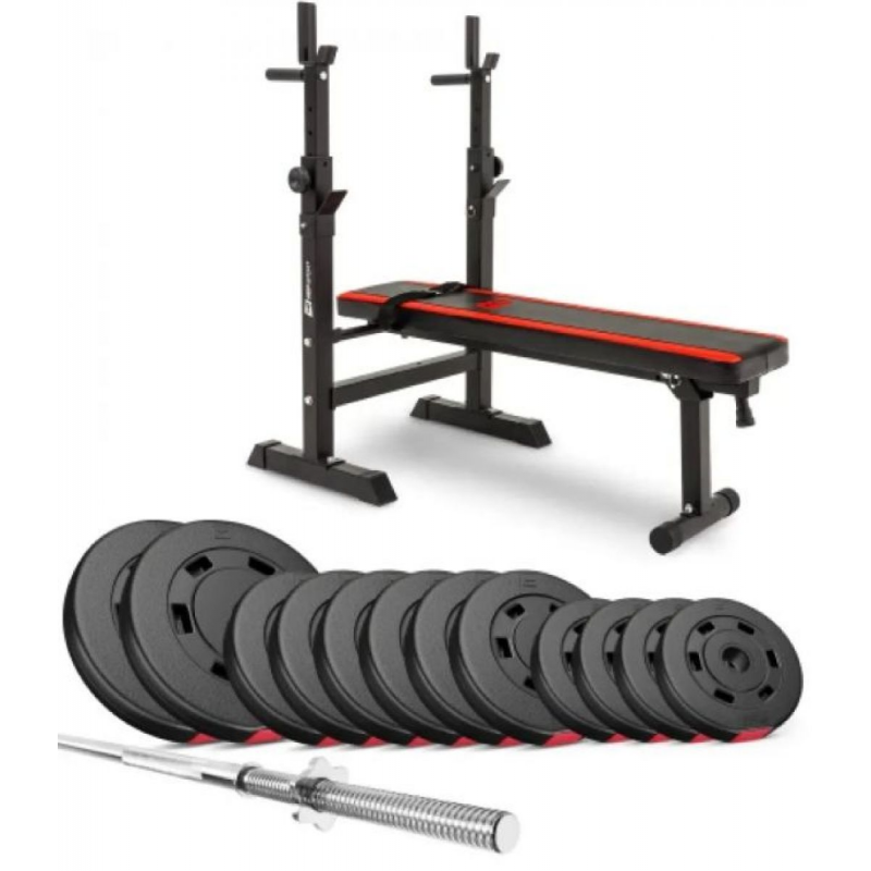 Комплект орієнтований на тренування з вільними вагами та підходить для опрацювання м'язів грудей, спини, рук, плечей, ніг та преса. Лава HS-1080 з регульованими стійками забезпечує зручність виконання лежачого жиму, вправ під кутом, а також тренувань з гантелями та штангою. Складна конструкція дозволяє економити простір та легко зберігати обладнання у квартирі.