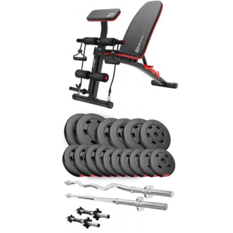 - Тип: Набір з лавою HS-1035, штангами та гантелями